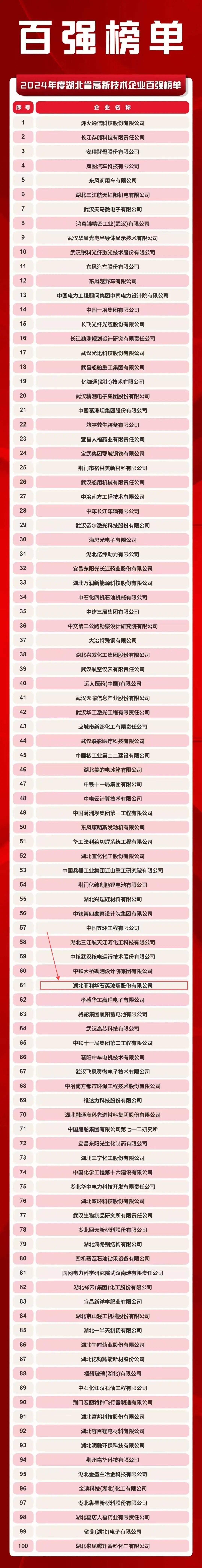 近日2024年度湖北省高新技术企业百强发布我司入选榜单。